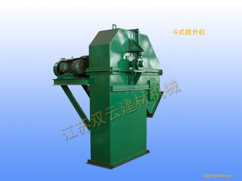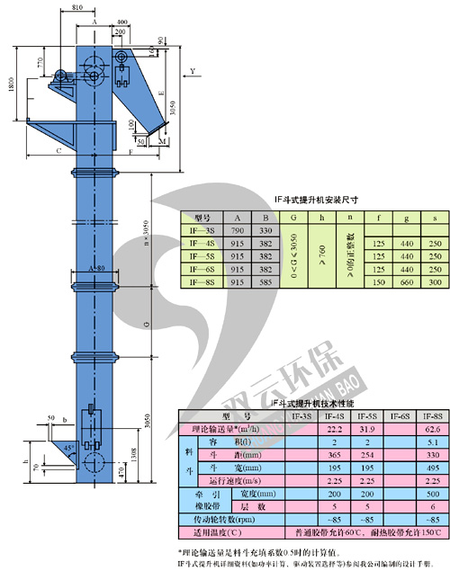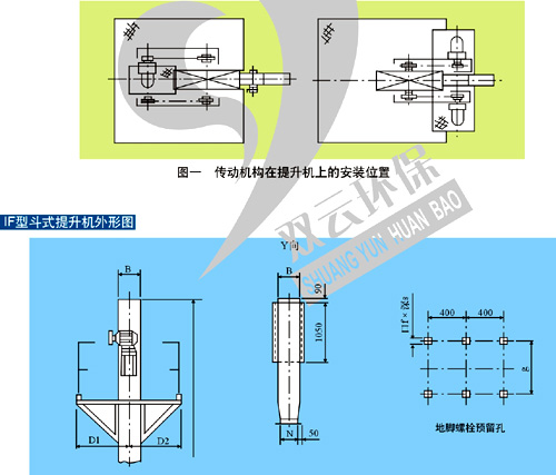 仿日式IF型斗式提升机是机械工业部“六五”期间重点引进消化项目-冷硬呋喃树脂砂再生成套设备中的重要辅助设备。该机由日本太洋铸机株式会社提供制造图,经国内设计、研究部门消化,由我公司制造。适合于垂直输送粉状颗粒状及小块状的无粘性物料。已成功地应用在国内各冷硬呋喃树脂砂铸造车间。 IF型斗式提升机的特点: 1、皮带运行速度高,其皮带动行速度达2.25m/s,提升效率大大提高,与同样高度,同等生产率的D型斗式提升机相比,其功率消耗降低,外型尺寸减小,整机重量减轻。 2、采用顶部滚筒张紧装置,进料口高度大大降低,并可以任意装在出料口的同侧、对侧或者配置双进料口,这样使得地坑深度减低,设备布置 灵活方便。 3、采和摆线针轮减速机减速、链条传动。传动机构结构紧凑,重量轻,既可置于出料口的对侧,又可直接固定在出料口的侧壁上(见图一)这样使得设备所占用的空间位置尽可能减少,给面积紧张处的设备布置带来方便。 4、 根据用户需要,本提升机的进料口、出料口的大小、形状、在机壳上的安装位置以及检修平面的大小可以在一定范围里变动。